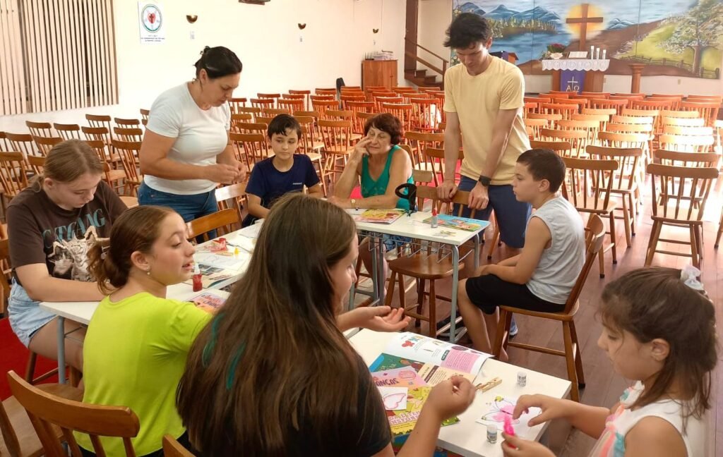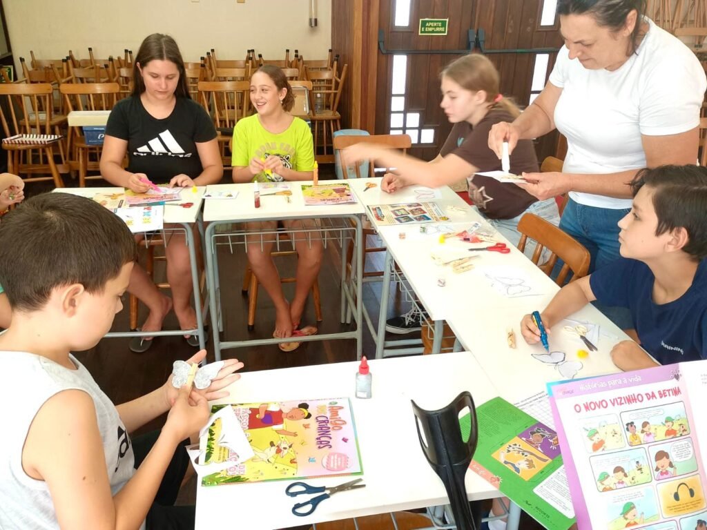 Na tarde de sábado (28.03) aconteceu o primeiro encontro do ano da Tarde Bíblica das Crianças. Refletimos sobre a Páscoa a partir da temática da revista O Amigo das Crianças: “Páscoa é tempo de transformação”.